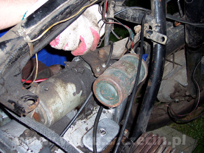 As usual starting from the pictures made when motorcycle was in one piece...Not so good... I thought 'bout buying the new one, but I decided to keep the old one. Still works :) : After disassembly, coil has been thoroughly cleaned, old paint've been removed, skimmed from oil and grease and painted with primer paint. Primer paint was used gently where signs were minted. After that I used black matte paint as is used for most engine parts: Tadaaaaam :) Job's done :), Prepared for assembly...
